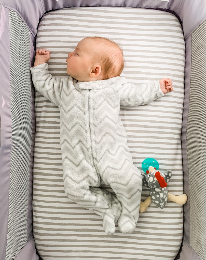- Toys – Your babe will have no interest in toys for a couple months, but it’s so fun once they do! We like this easy to grab rattley guy, a toy to play with on car rides, and anything that crinkles.
